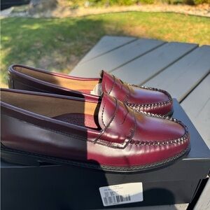 ONLY 2 PAIRS LEFT!! 7.5 ONLY LEFT!! GORGEOUS PREPPY SHOE FOR FALL!! G.H. Bass Willa 1936 flat strap loafers. Beautiful wine color. Whip stitch trim. Penny strap accent. Rounded toe. Leather upper and sole. NWT and in box! Imported.