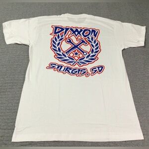 Dixxon White Sturgis USA Sketchy Blue and Red Crest Graphic Men’s T-Shirt Size L