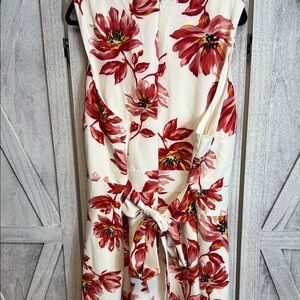 Chic midi dress with bold red floral design. Sleeveless and stylish. Ideal for any event.