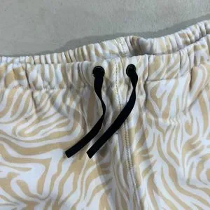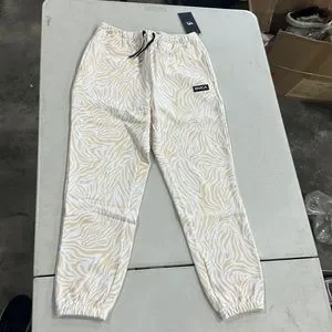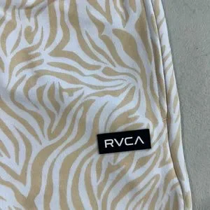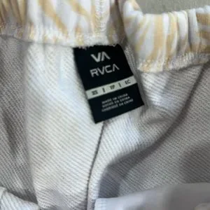 Stylish RVCA track pants with a zebra pattern. Elastic waistband with drawstring. Comfortable and trendy design.