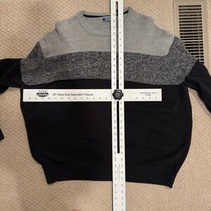 IZOD Mens XXL Sweater Color Block Crew Neck Pullover Gray Black Knitwear