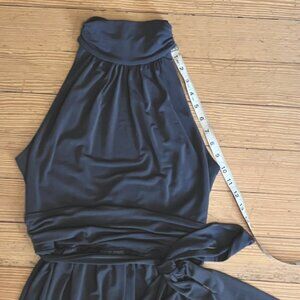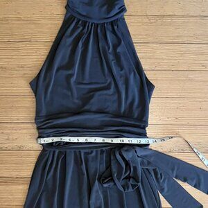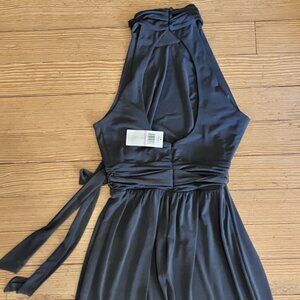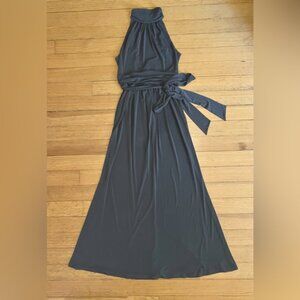 NWT Max & Cleo Keyhole back Halter Gown in Slate Grey Sz 6.