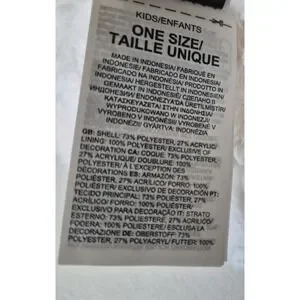 Exterior: 73% acrylic, 27% polyester; Lining: 100% polyester