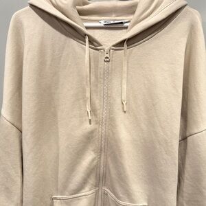 Stay cozy and stylish with this women's zip-up hoodie. Perfect for casual outings and layering. Relaxed for with plenty of room to move. Full zip and 2 front pockets for easy wear. Made from ultra soft fleece. Item for sale is cream colored.