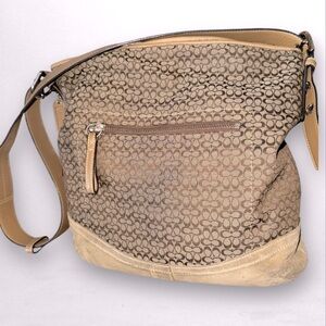 COACH Signature Monogram Logo Rectangle Crossbody Bag 12x13 Tan Brown Y2K