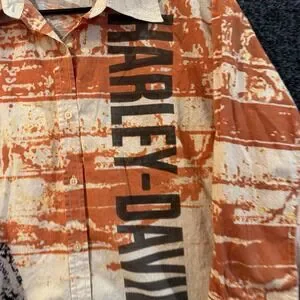 Harley Davidson L/S Button Up Shirt Cream /Orange Color Womens 2XL Nevada Co