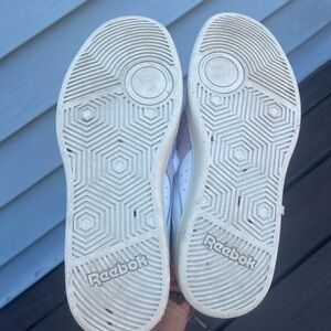 Stylish Reebok high-tops. White leather with pink accents. Perfect for everyday wear.