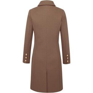 Features: Long sleeve, classic notch lapel collar, double breasted front, side flap pockets, knee length