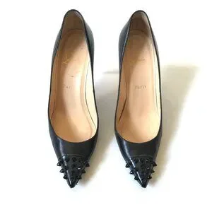 Christian Louboutin Geo Spike Pointed Toe Pumps Heels Womens 38.5 8.5 Black Stud