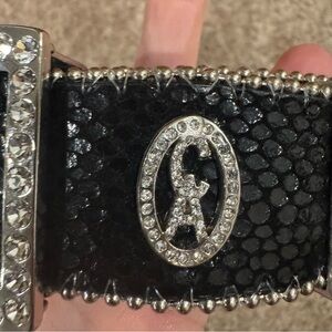 Christine Alexander XL Rhinestone Western Belt – Black Genuine Leather
