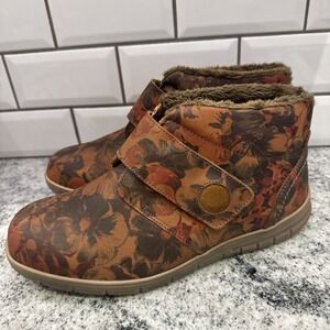 Cosyfeet Womens Boot Martha 10.5 Roomy Diabetes Swollen Feet Nubuck Floral Brown