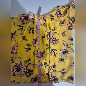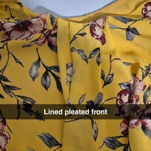 Soprano Floral Yellow Purple Lined Pleated Women's Top Size Small 004