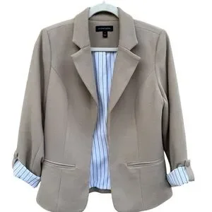 Stylish beige blazer with a classic striped lining. Perfect for versatile wear.