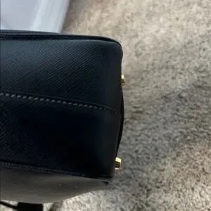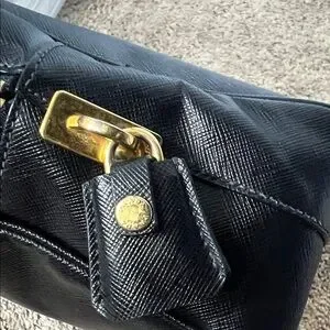 Chic black leather tote with gold hardware. Features dual handles and a structured silhouette. Preloved bag so kindly manage your expectations , clean inside and outside, just slightly faded hardwares, offers are welcome but no low ball