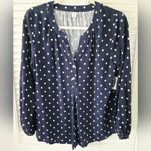 Old Navy Navy Polka Dot Popover Blouse XS NWT