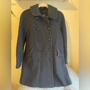 New without tag double breasted virgin wool coat, never worn. It may look old on pictures due to bad lighting but it’s gorgeous. Color is blue navy. It fits a S or M