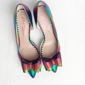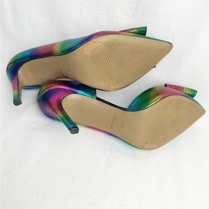 Vibrant rainbow heels with a stylish bow. Perfect for adding a pop of color.