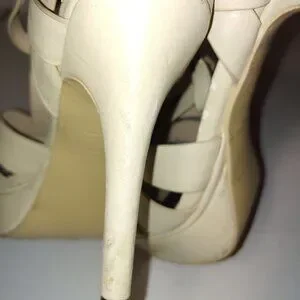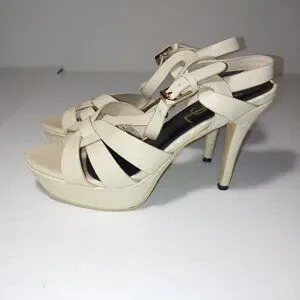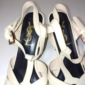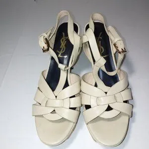 SAINT LAURENT Tribute Platform Sandals in Smooth Leather Cream Size 39