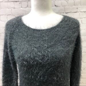 Topshop Eyelash Gray Sweater Crewneck Long Sleeve Size 2 Cozy Fuzzy