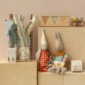 This 4-piece set of metal wire baskets is the perfect storage for your Maileg items. It comes in 3 different sizes. All are packed together. 1 x Large (28,5x26x35 cm) GREY - 1 x Medium (8x21x12 cm) ROSE - 2 x Small (23x16x8 cm) OCHER + GREY
