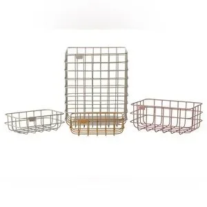 Enhance your home organization with this stylish wire storage basket set. Featuring elegant yellow, grey, and pink colors, these baskets are perfect for adding a touch of sophistication to any room. Ideal for storing various items while keeping your space tidy.