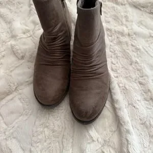 Keywords: Bare Traps, Yuno boots, Ankle boots, Brown boots, Slouch boots, Ruched boots, Womens boots, Size 8M, Casual boots, Zipper boots, Comfortable boots, Fashion boots, Everyday wear, Fall fashion