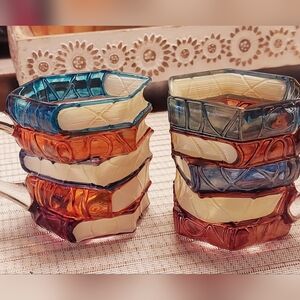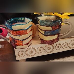 Colorful Stacked Book Glass Mugs Set NWOT