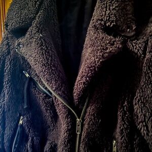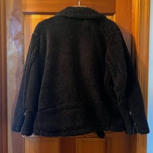 Free People So Cozy Slouchy Black Teddy Moto Jacket