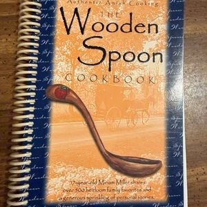 Explore authentic Amish cooking with The Wooden Spoon Cookbook. Features a charming wooden spoon design on the cover.
