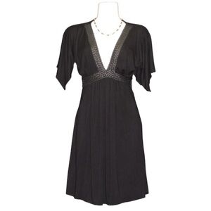 Vertigo Paris Vegan Leather Braided V-Neck Dress. Attached Tie Back. Large