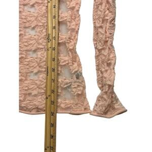 Free People Sheer Lace Textured Long Sleeve Top Blush Size M Romantic Coquette