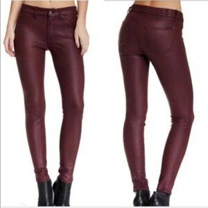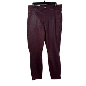 7 for All Mankind NEW Burgundy Waxed Denim High Waist Ankle Skinny Women's Sz 32