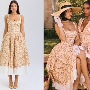 House of CB 'Alba' Honeyflower Priint Gathered Cotton Midi Dress NWOT