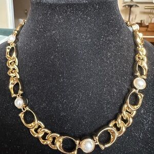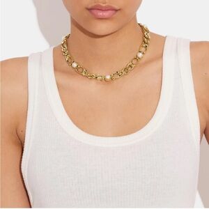 NWT Coach Signature Curb Chain Necklace with pouch. 16” adjustable to 18” $168 retail.