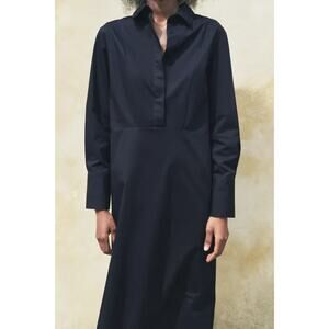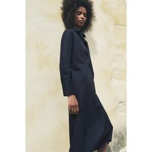 Zara Collection Long Sleeve Pullover Poplin Maxi Shirt Dress Blue Size Small