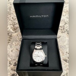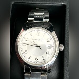 Beautiful,clean,elegant,dressy HAMILTON model- all original, all from stainless steel , great condition, works fine, looks really NICE. Slight marks on back cover looks like left from protective sticker or light wear.