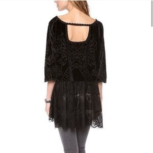 Free People, boho, bohemian, velvet burnout, lace tunic, babydoll top, sheer lace, festival, gypsy, romantic, gothic boho, witchy, Stevie Nicks vibes, Anthropologie style, Free People XS, flowy top