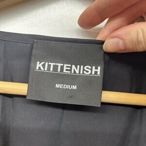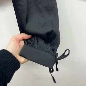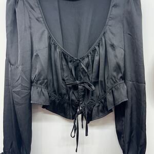 KITTENISH Black Satin Tie Front Cropped Crop Long Sleeve Blouse Top Medium