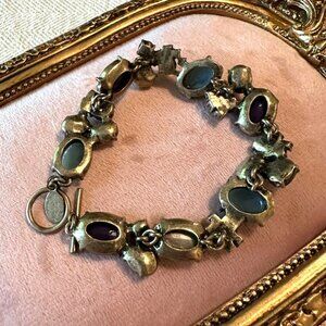 A whimsical blend of vintage allure and modern charm, this bracelet tells a story through its vibrant blue stones. Each gem-like piece is set in antique gold-tone metal, evoking memories of y2k fashion's playful elegance. Designed by Loft, it wraps your wrist with a touch of timeless sophistication.