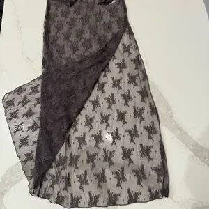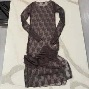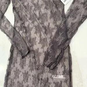 Free People NWT Lady Lux Maxi Sheer Lace Slip Dress Womens Medium Dark Gull Gray