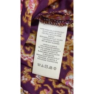 FREE PEOPLE Lucky Shirtee In Cosmo Paisley Ruched V Neck SHIRT Mesh Boho y2k L