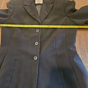 The skirt and jacket are lined. The jacket has built-in shoulder pads. The skirt still has a dry cleaning tag attached, so she's ready to wear!