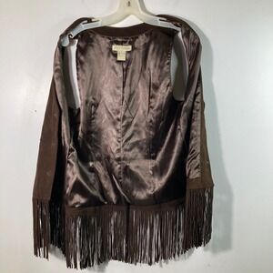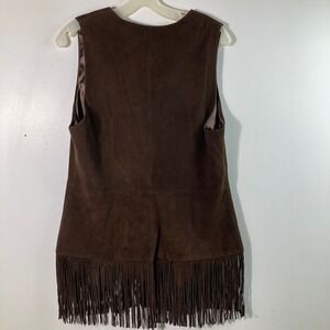 Womens Stetson Suede Leather Fringed Vest Lined L Brown Button Front