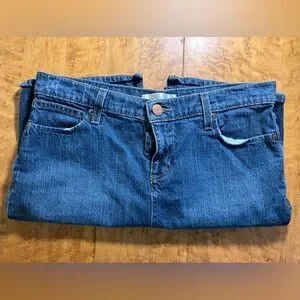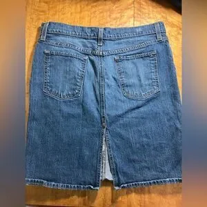 This Old Navy jean mini skirt is just below waist style. They stretch, are in excellent condition, and are a size 10