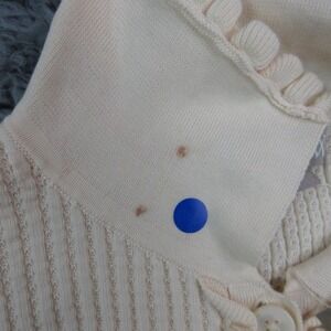 Special notes: Collar area shows visible brown spots/discoloration as highlighted in photos.