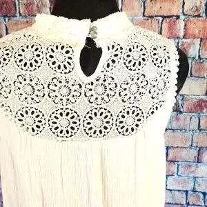 Hint Of Mint Lace Gauze Ivory Boho Dress S