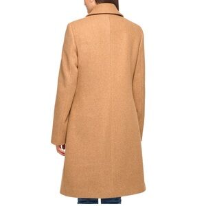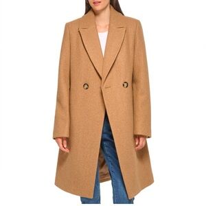 Stylish tan overcoat. Perfect for layering. Elegant and versatile.