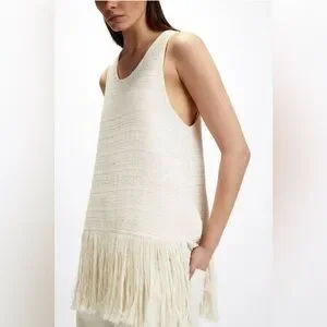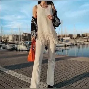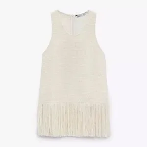I’m selling a ZARA Ecru Cream Fringed Textured Weave Sleeveless Top Size XL for $30.