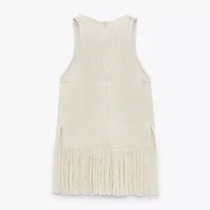 ZARA Ecru Cream Fringed Textured Weave Sleeveless Top Size XL Music Festival
