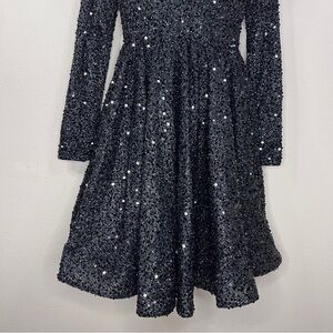 Black Sequin Long Sleeve Formal Dress Fit And Flare Small Event Prom Mesh
